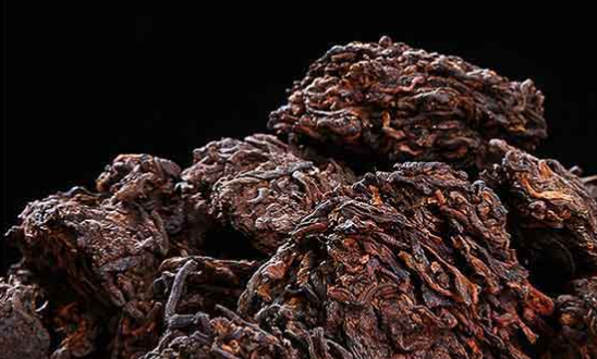 干茶色泽枯暗,汤色为暗黄色、棕色或红棕色,口感柔和,冲泡后微甜。除了茶的一般功能外,它还具有降血压、降血脂和帮助消化的作用。烘烤和冷却后,茶叶被密封并储存在特殊的石头和木材结构的地窖中,以促进后熟效果和一系列变化。沉香香甜醇厚。